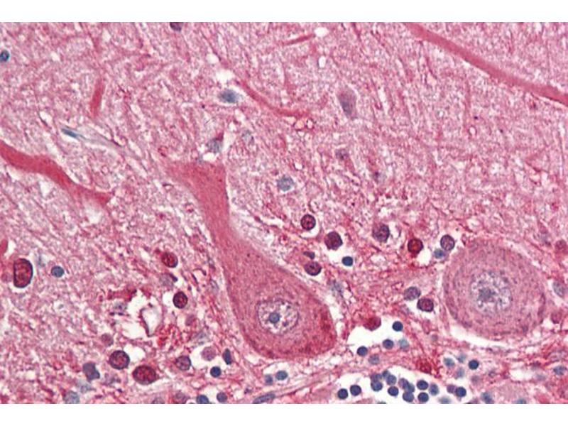 Immunohistochemistry: Paraffin embedded Human Brain (Cerebellum). Recommended concentration: 3.75 μg/mL.