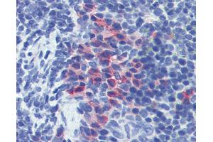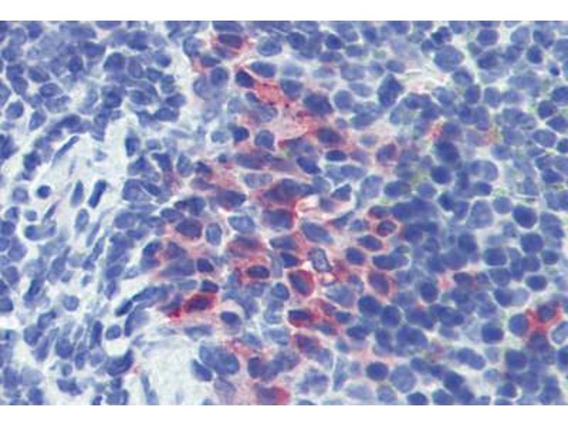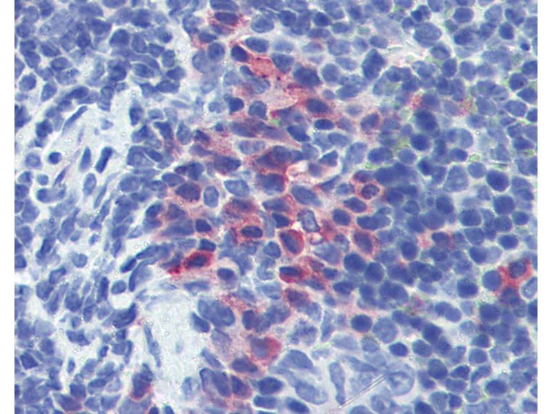 Usage: Immunohistochemistry: This antibody was validated for use in immunohistochemistry on a panel of formalin-fixed, paraffin-embedded (FFPE) mouse tissues after heat induced antigen retrieval in  pH 6.0 citrate buffer. After incubation with the primary antibody, slides were incubated with biotinylated secondary antibody, followed by alkaline phosphatase-streptavidin and chromogen. The stained slides were evaluated by a pathologist to confirm staining specificity. The optimal working concentration for this antibody was determined to be 10 μg/mL.
