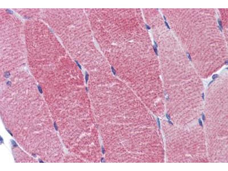 - Human and mouse alpha Actinin 2. Predicted cross-reactivity based on amino acid sequence homology: rat (91 % ), bovine (99 %), zebrafish (92 %).