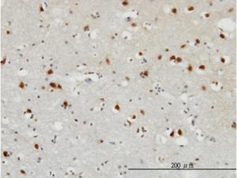 Usage: Immunohistochemistry: Formalin-fixed paraffin-embedded sections. Sandwich ELISA: Recombinant protein. Western Blot: Transfected lysate, Recombinant protein. -
