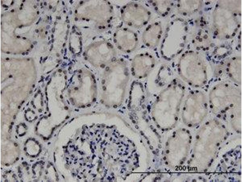 Usage: Immunohistochemistry: Formalin-fixed paraffin-embedded sections. Sandwich ELISA: Recombinant protein. Western Blot: Transfected lysate, Recombinant protein. -