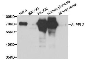 - There are at least four distinct but related alkaline phosphatases: intestinal, placental, placental-like, and liver/bone/kidney (tissue non-specific). The product of this gene is a membrane bound glycosylated enzyme, localized to testis, thymus and certain germ cell tumors, that is closely related to both the placental and intestinal forms of alkaline phosphatase.,ALPPL2,ALPG,ALPPL,GCAP,Cancer,Tumor biomarkers,ALPPL2