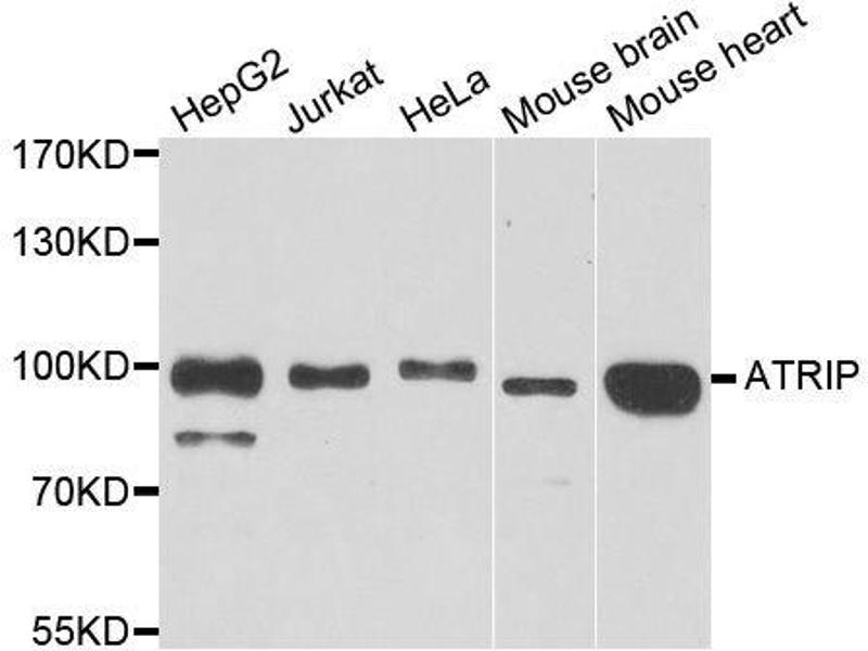 - This gene encodes an essential component of the DNA damage checkpoint. The encoded protein binds to single-stranded DNA coated with replication protein A. The protein also interacts with the ataxia telangiectasia and Rad3 related protein kinase, resulting in its accumulation at intranuclear foci induced by DNA damage. Multiple transcript variants encoding different isoforms have been found for this gene.,ATRIP,Epigenetics & Nuclear Signaling,DNA Damage & Repair,ATRIP