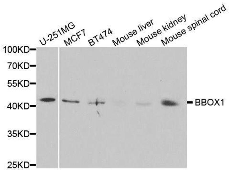 - Recombinant fusion protein containing a sequence corresponding to amino acids 1-180 of human BBOX1 (NP_003977.1).