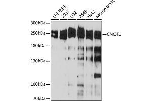 Scaffolding component of the CCR4-NOT complex which is one of the major cellular mRNA deadenylases and is linked to various cellular processes including bulk mRNA degradation, miRNA-mediated repression, translational repression during translational initiation and general transcription regulation. Additional complex functions may be a consequence of its influence on mRNA expression. Its scaffolding function implies its interaction with the catalytic complex module and diverse RNA-binding proteins mediating the complex recruitment to selected mRNA 3'UTRs. Involved in degradation of AU-rich element (ARE-containing mRNAs probably via association with ZFP36. Mediates the recruitment of the CCR4-NOT complex to miRNA targets and to the RISC complex via association with TNRC6A, TNRC6B or TNRC6C. Acts as a transcriptional repressor. Represses the ligand-dependent transcriptional activation by nuclear receptors. Involved in the maintenance of embryonic stem (ES cell identity.,CNOT1,AD-005,CDC39,NOT1,NOT1H,Epigenetics & Nuclear Signaling,RNA Binding,CNOT1