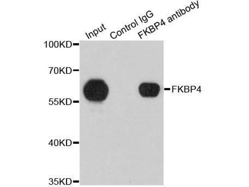 - The protein encoded by this gene is a member of the immunophilin protein family, which play a role in immunoregulation and basic cellular processes involving protein folding and trafficking. This encoded protein is a cis-trans prolyl isomerase that binds to the immunosuppressants FK506 and rapamycin. It has high structural and functional similarity to FK506-binding protein 1A (FKBP1A), but unlike FKBP1A, this protein does not have immunosuppressant activity when complexed with FK506. It interacts with interferon regulatory factor-4 and plays an important role in immunoregulatory gene expression in B and T lymphocytes. This encoded protein is known to associate with phytanoyl-CoA alpha-hydroxylase. It can also associate with two heat shock proteins (hsp90 and hsp70) and thus may play a role in the intracellular trafficking of hetero-oligomeric forms of the steroid hormone receptors. This protein correlates strongly with adeno-associated virus type 2 vectors (AAV) resulting in a significant increase in AAV-mediated transgene expression in human cell lines. Thus this encoded protein is thought to have important implications for the optimal use of AAV vectors in human gene therapy. The human genome contains several non-transcribed pseudogenes similar to this gene.,FKBP4,FKBP51,FKBP52,FKBP59,HBI,Hsp56,PPIase,p52,Epigenetics & Nuclear Signaling,RNA Binding,Nuclear Receptor Signaling,Nuclear hormone receptors,Signal Transduction,Cell Biology & Developmental Biology,Cytoskeleton,Microtubules,FKBP4