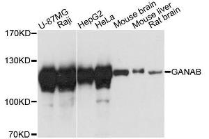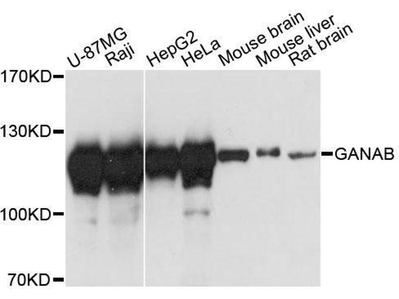 This gene encodes the alpha subunit of glucosidase II and a member of the glycosyl hydrolase 31 family of proteins. The heterodimeric enzyme glucosidase II plays a role in protein folding and quality control by cleaving glucose residues from immature glycoproteins in the endoplasmic reticulum. Expression of the encoded protein is elevated in lung tumor tissue and in response to UV irradiation. Mutations in this gene cause autosomal-dominant polycystic kidney and liver disease.,GANAB,G2AN,GIIA,GLUII,PKD3,Epigenetics & Nuclear Signaling,RNA Binding,Cancer,Signal Transduction,Endocrine & Metabolism,GANAB