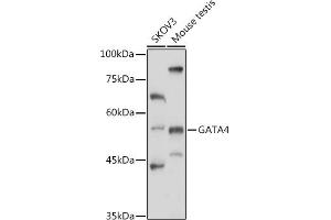 This gene encodes a member of the GATA family of zinc-finger transcription factors. Members of this family recognize the GATA motif which is present in the promoters of many genes. This protein is thought to regulate genes involved in embryogenesis and in myocardial differentiation and function, and is necessary for normal testicular development. Mutations in this gene have been associated with cardiac septal defects. Additionally, alterations in gene expression have been associated with several cancer types. Alternative splicing results in multiple transcript variants.,GATA4,ASD2,TACHD,TOF,VSD1,Epigenetics & Nuclear Signaling,Transcription Factors,Cancer,Tumor suppressors,Cell Biology & Developmental Biology,Stem Cells,Mesenchymal Stem Cells,Cardiovascular,Cardiovascular Markers,Cardiomyocytes,Heart,Hypertrophy,GATA4