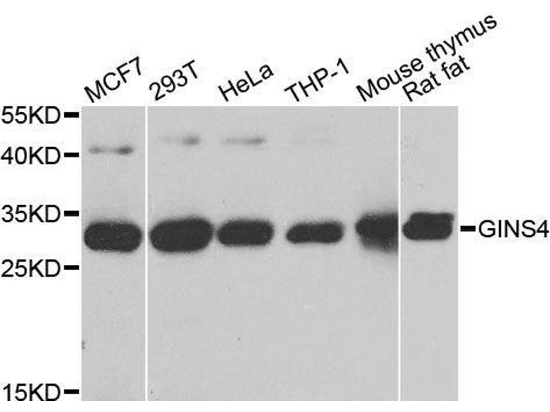 - Recombinant fusion protein containing a sequence corresponding to amino acids 108-207 of human GINS4 (NP_115712.1).