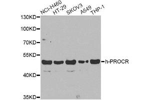 The protein encoded by this gene is a receptor for activated protein C, a serine protease activated by and involved in the blood coagulation pathway. The encoded protein is an N-glycosylated type I membrane protein that enhances the activation of protein C. Mutations in this gene have been associated with venous thromboembolism and myocardial infarction, as well as with late fetal loss during pregnancy. The encoded protein may also play a role in malarial infection and has been associated with cancer.,PROCR,CCCA,CCD41,EPCR,h-PROCR,Immunology & Inflammation,CD markers,Stem Cells,Hematopoietic Progenitors,Cardiovascular,Blood,Coagulation,PROCR