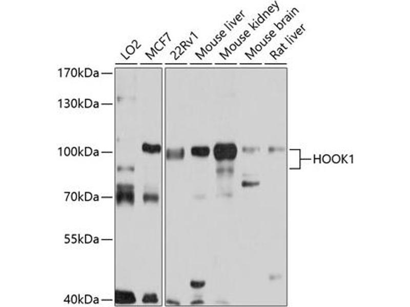 - This gene encodes a member of the hook family of coiled-coil proteins, which bind to microtubules and organelles through their N- and C-terminal domains, respectively. The encoded protein localizes to discrete punctuate subcellular structures, and interacts with several members of the Rab GTPase family involved in endocytosis. It is thought to link endocytic membrane trafficking to the microtubule cytoskeleton. Several alternatively spliced transcript variants have been identified, but the full-length nature of some of these variants has not been determined.,HOOK1,HK1,Cancer,Signal Transduction,Cell Biology & Developmental Biology,Cell Cycle,Cell differentiation,Cytoskeleton,Microtubules,Stem Cells,Germline Stem Cells,HOOK1