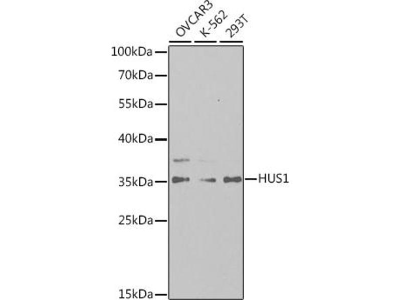 - The protein encoded by this gene is a component of an evolutionarily conserved, genotoxin-activated checkpoint complex that is involved in the cell cycle arrest in response to DNA damage. This protein forms a heterotrimeric complex with checkpoint proteins RAD9 and RAD1. In response to DNA damage, the trimeric complex interacts with another protein complex consisting of checkpoint protein RAD17 and four small subunits of the replication factor C (RFC), which loads the combined complex onto the chromatin. The DNA damage induced chromatin binding has been shown to depend on the activation of the checkpoint kinase ATM, and is thought to be an early checkpoint signaling event. Alternative splicing results in multiple transcript variants.,HUS1,hHUS1,Epigenetics & Nuclear Signaling,DNA Damage & Repair,Signal Transduction,Kinase,HUS1