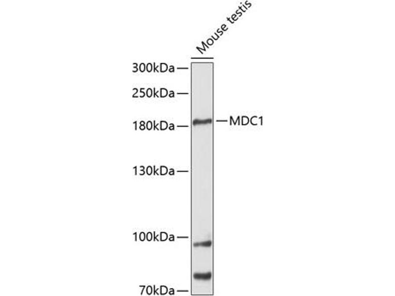 - A synthetic peptide corresponding to a sequence within amino acids 1-100 of human MDC1 (NP_055456.2).