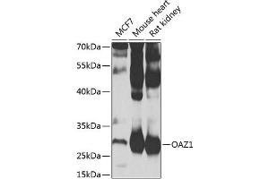 - The protein encoded by this gene belongs to the ornithine decarboxylase antizyme family, which plays a role in cell growth and proliferation by regulating intracellular polyamine levels. Expression of antizymes requires +1 ribosomal frameshifting, which is enhanced by high levels of polyamines. Antizymes in turn bind to and inhibit ornithine decarboxylase (ODC), the key enzyme in polyamine biosynthesis, thus, completing the auto-regulatory circuit. This gene encodes antizyme 1, the first member of the antizyme family, that has broad tissue distribution, and negatively regulates intracellular polyamine levels by binding to and targeting ODC for degradation, as well as inhibiting polyamine uptake. Antizyme 1 mRNA contains two potential in-frame AUGs, and studies in rat suggest that alternative use of the two translation initiation sites results in N-terminally distinct protein isoforms with different subcellular localization. Alternatively spliced transcript variants have also been noted for this gene.,OAZ1,AZ1,AZI,OAZ,Cancer,Signal Transduction,Cell Biology & Developmental Biology,Cell Cycle,Centrosome,Endocrine & Metabolism,Amino acid metabolism,OAZ1
