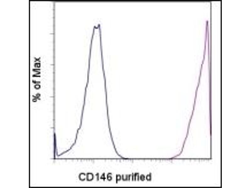 - Human CD146 also known as MUC18, s-endo, Endo-CAM and Mel-CAM, which is a member of the Ig superfamily of proteins. The expression of CD146 is found on endothelial cells, bone marrow fibroblasts and some tumors (especially melanoma). Recently mesenchymal stromal cells and endometrial stromal cells have also been shown to express CD146. The presence of CD146 on circulating blood cells have been confined to a subset of T cells rather than circulating endothelial cells, as expression of other endothelial markers (CD31 and CD51/61) is negative. Expression can be found on activated lymphocytes. The protein is heavily glycosylated with more than 50 % of the mass from carbohydrates.Synonyms: A32, CD146, Cell surface glycoprotein P1H12, MCAM, MUC18, Melanoma cell adhesion molecule, Melanoma-associated antigen MUC18, S-endo 1 endothelial-associated antigen