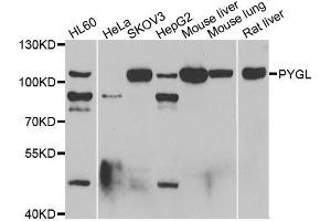 - This gene encodes a homodimeric protein that catalyses the cleavage of alpha-1,4-glucosidic bonds to release glucose-1-phosphate from liver glycogen stores. This protein switches from inactive phosphorylase B to active phosphorylase A by phosphorylation of serine residue 15. Activity of this enzyme is further regulated by multiple allosteric effectors and hormonal controls. Humans have three glycogen phosphorylase genes that encode distinct isozymes that are primarily expressed in liver, brain and muscle, respectively. The liver isozyme serves the glycemic demands of the body in general while the brain and muscle isozymes supply just those tissues. In glycogen storage disease type VI, also known as Hers disease, mutations in liver glycogen phosphorylase inhibit the conversion of glycogen to glucose and results in moderate hypoglycemia, mild ketosis, growth retardation and hepatomegaly. Alternative splicing results in multiple transcript variants encoding different isoforms.,PYGL,GSD6,Cancer,Signal Transduction,Endocrine & Metabolism,Carbohydrate metabolism,PYGL