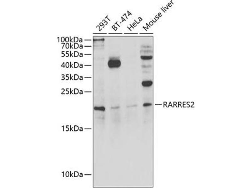 - This gene encodes a secreted chemotactic protein that initiates chemotaxis via the ChemR23 G protein-coupled seven-transmembrane domain ligand. Expression of this gene is upregulated by the synthetic retinoid tazarotene and occurs in a wide variety of tissues. The active protein has several roles, including that as an adipokine and as an antimicrobial protein with activity against bacteria and fungi.,RARRES2,HP10433,TIG2,Cancer,Signal Transduction,Endocrine & Metabolism,Lipid Metabolism,Hydrolysis,Cardiovascular,Blood,Lipids,Adipose Related,RARRES2