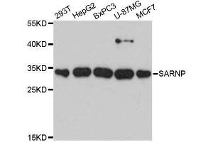 - Recombinant fusion protein containing a sequence corresponding to amino acids 1-210 of human SARNP (NP_149073.1).
