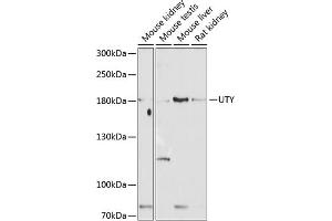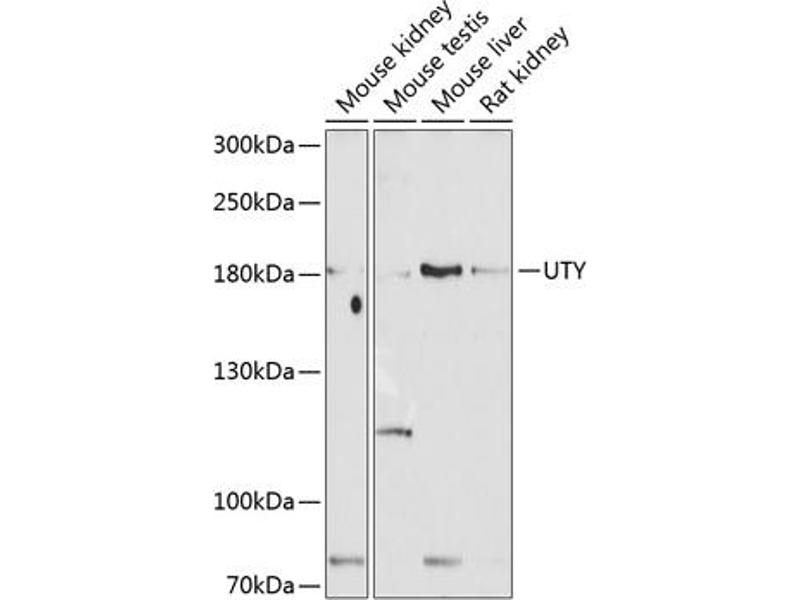 - This gene encodes a protein containing tetratricopeptide repeats which are thought to be involved in protein-protein interactions. The encoded protein is also a minor histocompatibility antigen which may induce graft rejection of male stem cell grafts. A large number of alternatively spliced transcripts have been observed for this gene, but the full length nature of some of these variants has not been determined.,UTY,KDM6AL,KDM6C,UTY1,Epigenetics & Nuclear Signaling,UTY