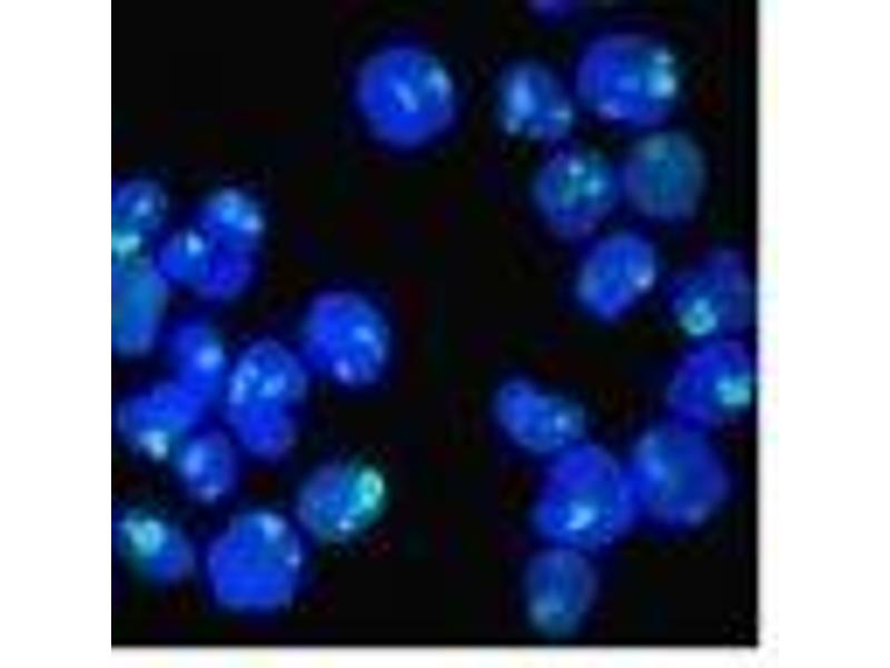 - This antibody recognizes a protein of ~76 kDa, which is identified as Nucleolin (NCL). It is the major nucleolar phosphoprotein of growing eukaryotic cells. NCL is located mainly in dense fibrillar regions of the nucleolus. It is found associated with intranucleolar chromatin and pre-ribosomal particles. Human NCL gene consists of 14 exons with 13 introns and spans approximately 11kb. It induces chromatin decondensation by binding to histone H1. It is thought to play a role in pre-rRNA transcription and ribosome assembly.This MAb can be used to stain the nucleoli in cell or tissue preparations and can be used as a marker of the nucleoli in subcellular fractions. It produces a speckled pattern in the nuclei of cells of normal and malignant cells and may be used to stain the nucleoli of cells in fixed or frozen tissue sections. It can be used with paraformaldehyde fixed frozen tissue or cell preparations and formalin fixed, paraffin-embedded tissue sections. Primary antibodies are available purified, or with a selection of fluorescent CF® dyes and other labels. CF® dyes offer exceptional brightness and photostability. Note: Conjugates of blue fluorescent dyes like CF®405S and CF®405M are not recommended for detecting low abundance targets, because blue dyes have lower fluorescence and can give higher non-specific background than other dye colors.