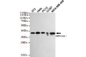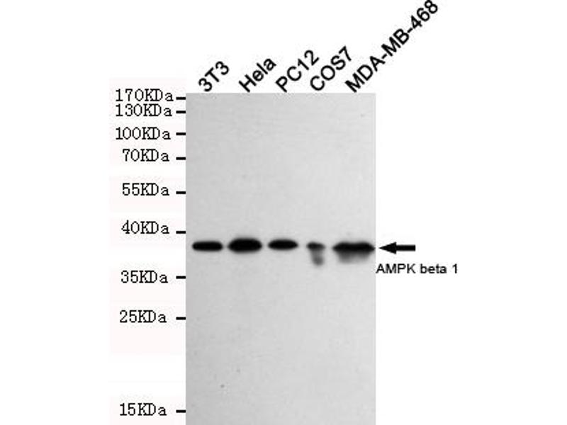 Non-catalytic subunit of AMP-activated protein kinase (AMPK), an energy sensor protein kinase that plays a key role in regulating cellular energy metabolism. In response to reduction of intracellular ATP levels, AMPK activates energy-producing pathways and inhibits energy-consuming processes: inhibits protein, carbohydrate and lipid biosynthesis, as well as cell growth and proliferation. AMPK acts via direct phosphorylation of metabolic enzymes, and by longer-term effects via phosphorylation of transcription regulators. Also acts as a regulator of cellular polarity by remodeling the actin cytoskeleton, probably by indirectly activating myosin. Beta non-catalytic subunit acts as a scaffold on which the AMPK complex assembles, via its C-terminus that bridges alpha (PRKAA1 or PRKAA2) and gamma subunits (PRKAG1, PRKAG2 or PRKAG3).