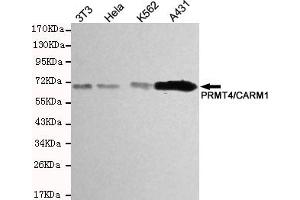 Methylates (mono- and asymmetric dimethylation) the guanidino nitrogens of arginyl residues in several proteins involved in DNA packaging, transcription regulation, pre-mRNA splicing, and mRNA stability. Recruited to promoters upon gene activation together with histone acetyltransferases from EP300/P300 and p160 families, methylates histone H3 at 'Arg-17' (H3R17me), forming mainly asymmetric dimethylarginine (H3R17me2a), leading to activate transcription via chromatin remodeling. During nuclear hormone receptor activation and TCF7L2/TCF4 activation, acts synergically with EP300/P300 and either one of the p160 histone acetyltransferases NCOA1/SRC1, NCOA2/GRIP1 and NCOA3/ACTR or CTNNB1/beta-catenin to activate transcription. During myogenic transcriptional activation, acts together with NCOA3/ACTR as a coactivator for MEF2C. During monocyte inflammatory stimulation, acts together with EP300/P300 as a coactivator for NF-kappa-B. Acts as coactivator for PPARG, promotes adipocyte differentiation and the accumulation of brown fat tissue. Plays a role in the regulation of pre-mRNA alternative splicing by methylation of splicing factors. Also seems to be involved in p53/TP53 transcriptional activation. Methylates EP300/P300, both at 'Arg- 2142', which may loosen its interaction with NCOA2/GRIP1, and at 'Arg-580' and 'Arg-604' in the KIX domain, which impairs its interaction with CREB and inhibits CREB-dependent transcriptional activation. Also methylates arginine residues in RNA-binding proteins PABPC1, ELAVL1 and ELAV4, which may affect their mRNA- stabilizing properties and the half-life of their target mRNAs.