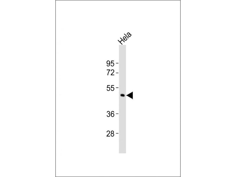 This CHST4 antibody is generated from a rabbit immunized with a KLH conjugated synthetic peptide between 357-390 amino acids from the C-terminal region of human CHST4.
