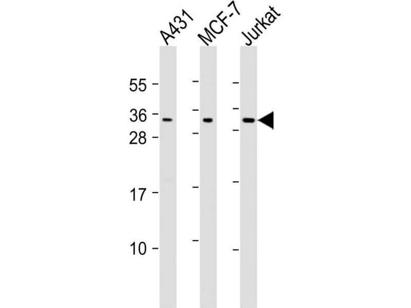 This CASP14 antibody is generated from a rabbit immunized with a KLH conjugated synthetic peptide between 59-93 amino acids from human CASP14.