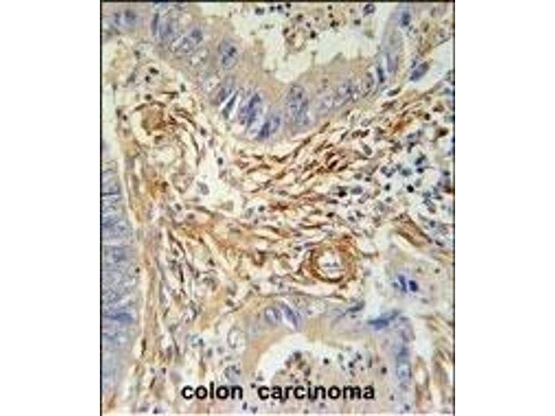 This PRB2 antibody is generated from rabbits immunized with a KLH conjugated synthetic peptide between 388-416 amino acids from the C-terminal region of human PRB2.