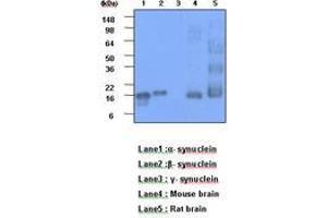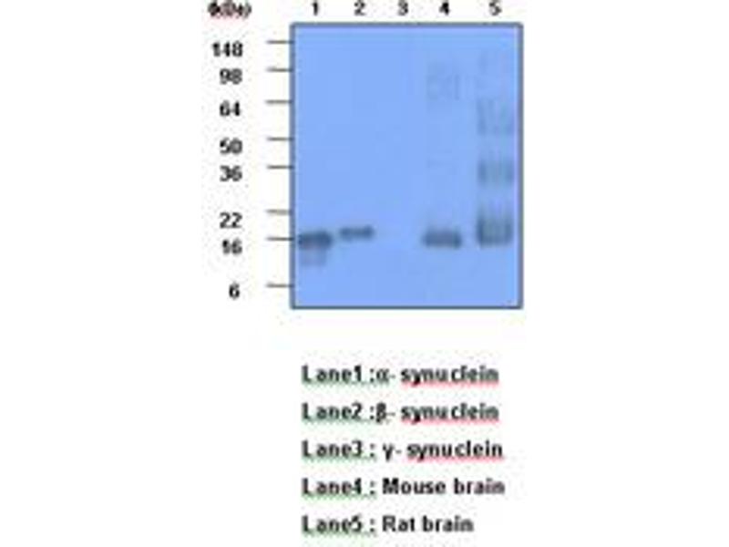 - This antibody detects: Synuclein Alpha + Beta