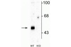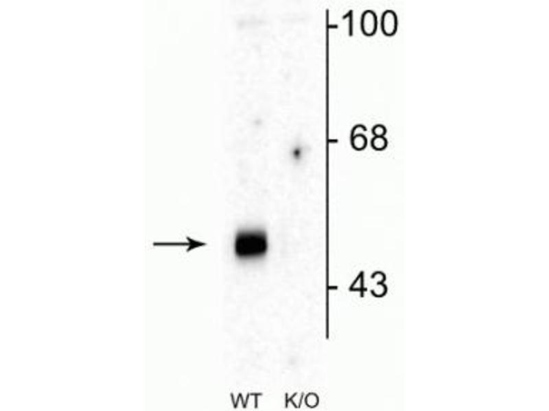 - Specific for endogenous levels of the ~51 kDa α2-subunit of the GABAA receptor in Western blots. Labeling is absent in α2-subunit knockout animals.