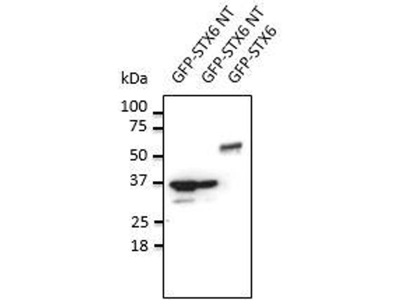 - Detects STX6 by Western blot in transfected cells with GFP-STX6.