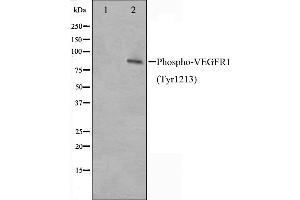 - Phospho-VEGFR1 (Tyr1213) Antibody detects endogenous levels of VEGFR1 only when phosphorylated at Tyrosine 1213.