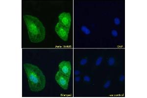 Immunofluorescence: Strong expression of the protein seen in the cytoplasm and nuclei of U2OS cells. Recommended concentration: 10μg/ml.