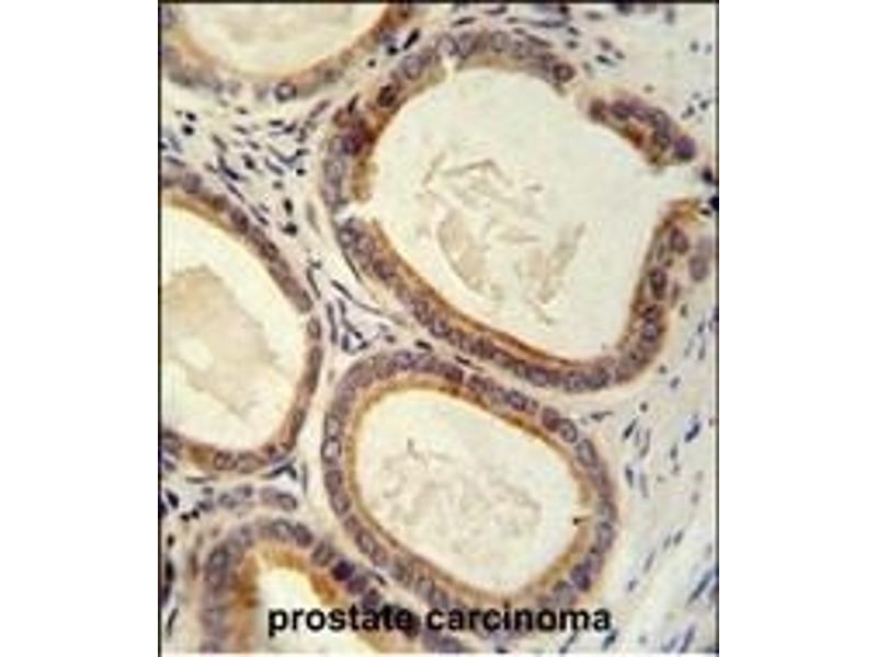 This TRAM2 antibody is generated from rabbits immunized with a KLH conjugated synthetic peptide between 342-370 amino acids from the C-terminal region of human TRAM2.