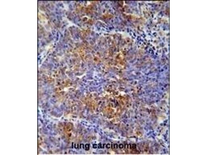 This MCAF2 antibody is generated from rabbits immunized with a KLH conjugated synthetic peptide between 318-347 amino acids from the Central region of human MCAF2.