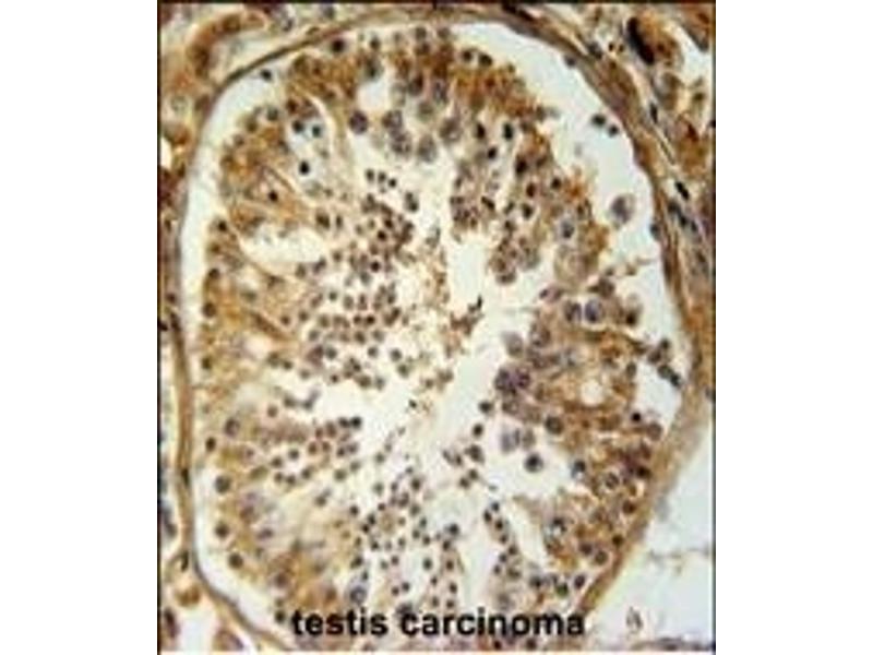 This SRAC1 antibody is generated from rabbits immunized with a KLH conjugated synthetic peptide between 552-581 amino acids from the C-terminal region of human SRAC1.