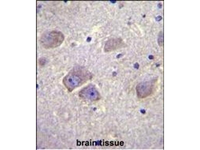 This WDR27 antibody is generated from rabbits immunized with a KLH conjugated synthetic peptide between 228-256 amino acids from the N-terminal region of human WDR27.
