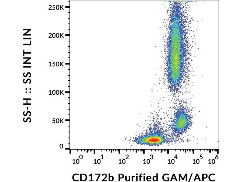 The mouse monoclonal antibody B4B6 recognizes an extracellular epitope of CD172b, an approximately 50 kDa transmembrane glycoprotein expressed on myeloid cells.