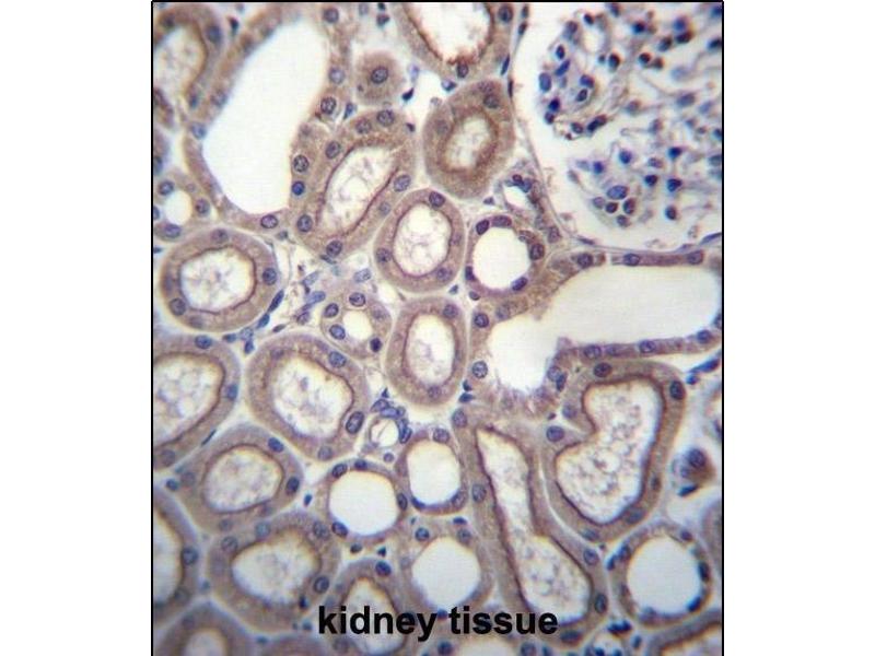 This RNF180 antibody is generated from rabbits immunized with a KLH conjugated synthetic peptide between 401-430 amino acids from the C-terminal region of human RNF180.