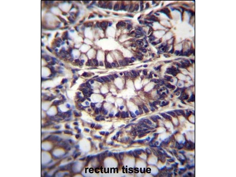 This TTC15 antibody is generated from rabbits immunized with a KLH conjugated synthetic peptide between 579-608 amino acids from the C-terminal region of human TTC15.