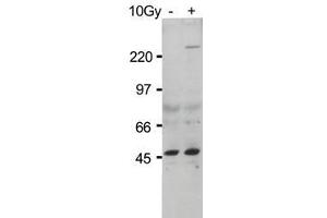 Background: ATM, the gene mutated in the hereditary disease ataxia-telangiectasia, codes for a protein kinase that acts as a master regulator of cellular responses to DNA double-strand breaks. ATM is normally inactive and the question of how it is activated in the event of DNA damage (due to ionizing radiation for instance) is central to understanding its function. ATM protein is now shown to be present in undamaged cells as an inactive dimer. Low doses of ionizing radiation, which induce only a few DNA breaks, activate at least half of the total ATM protein present, possibly in response to changes in chromatin structure. The ATM gene encodes a 370- kDa protein that belongs to the phosphoinositide 3-kinase (PI(3)K) superfamily, but which phosphorylates proteins rather than lipids. The 350-amino-acid kinase domain at the carboxy terminus of this large protein is the only segment of ATM with an assigned function. Exposure of cells to IR triggers ATM kinase activity, and this function is required for arrests in G1, S and G2 phases of the cell cycle. Several substrates of the ATM kinase participate in these IR-induced cell-cycle arrests. These include p53, Mdm2 and Chk2 in the G1 checkpoint, Nbs1. Ideal for Cancer, Cell Signaling, Chromatin, Neuroscience and Signal Transduction research.