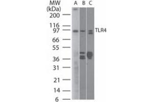 - TLR4 Antibody was produced in mice prepared by repeated immunizations with amino acids corresponding to an internal sequence in human TLR4.