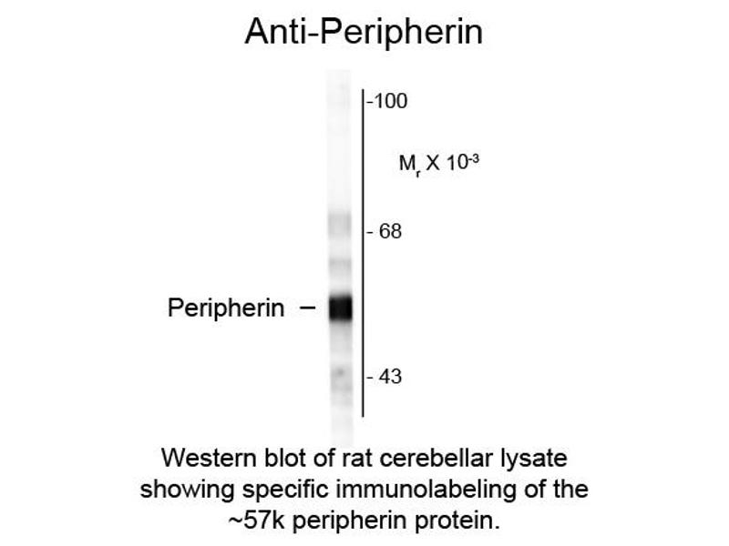 - Anti-Peripherin antibody is directed against rat Peripherin.