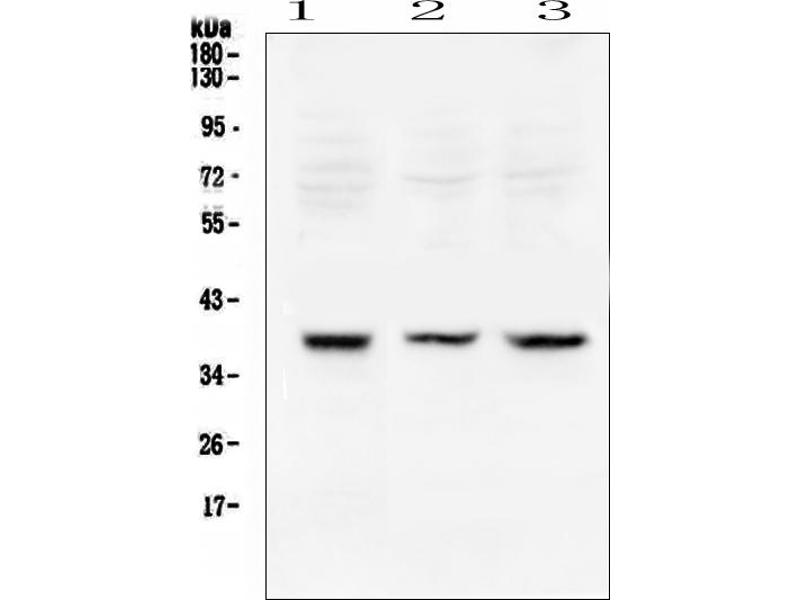 Tested Species: In-house tested species with positive results. By Heat: Boiling the paraffin sections in 10mM citrate buffer, pH6.0, for 20mins is required for the staining of formalin/paraffin sections. Other applications have not been tested. Optimal dilutions should be determined by end users.
