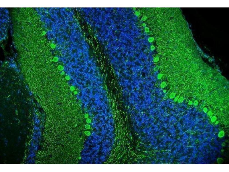 Background: Calbindin is a calcium-binding protein belonging to the troponin C superfamily. And it mapped to 8q21.3. Calretinin is expressed in central and peripheral nervous system and in many normal and pathological tissues. The rat and human calretinin exhibit 98 % sequence homology and 91 % homology to many other species. Two calcium binding proteins, calbindin and calretinin, have been reported to be expressed in abundance in Purkinje cells and other cell types in the cerebellum.
