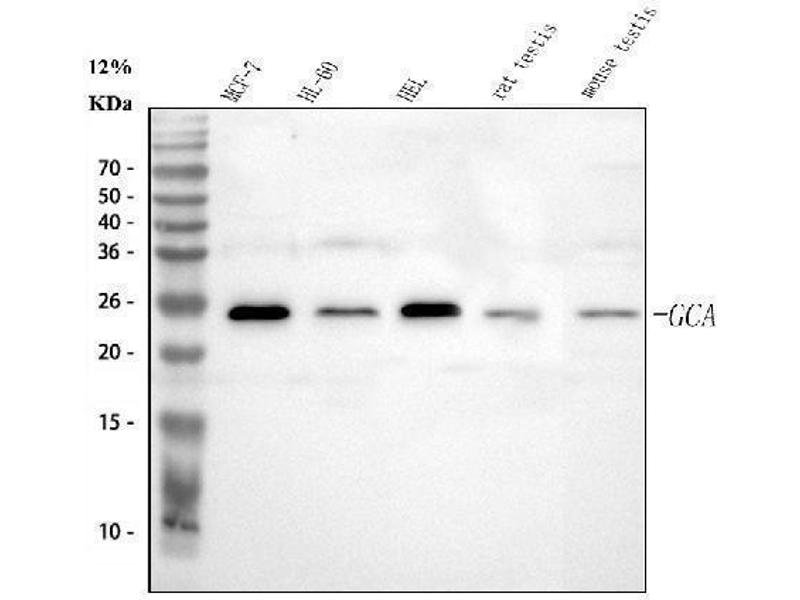- Anti-Grancalcin/GCA Antibody (ABIN6719568). Tested in ELISA, Flow Cytometry, IF, IHC, ICC, WB applications. This antibody reacts with Human, Mouse, Rat. This is a premium antibody that guarantees superior quality, high affinity, and strong signals with minimal background in Western blot applications.