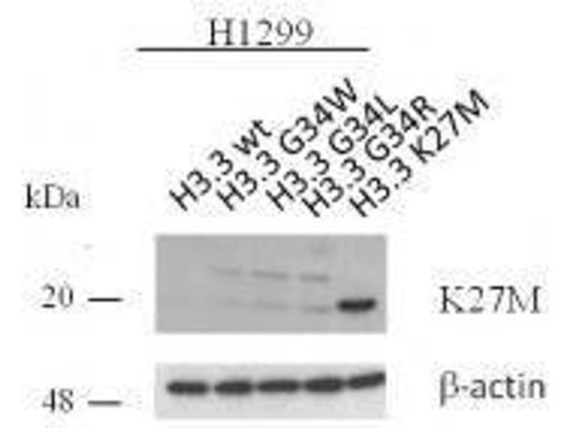 This antibody was generated using a Peptide containing a Methionine substitution at lysine 27 of human Histone H3.