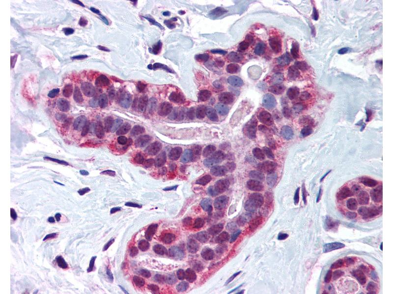 Usage: Immunohistochemistry: This antibody was validated for use in immunohistochemistry on a panel of 21 formalin-fixed, paraffin-embedded (FFPE) human tissues after heat induced antigen retrieval in pH 6.0 citrate buffer. After incubation with the primary antibody, slides were incubated with biotinylated secondary antibody, followed by alkaline phosphatase-streptavidin and chromogen. The stained slides were evaluated by a pathologist to confirm staining specificity. The optimal working concentration for this antibody was determined to be 3 μg/mL. -
