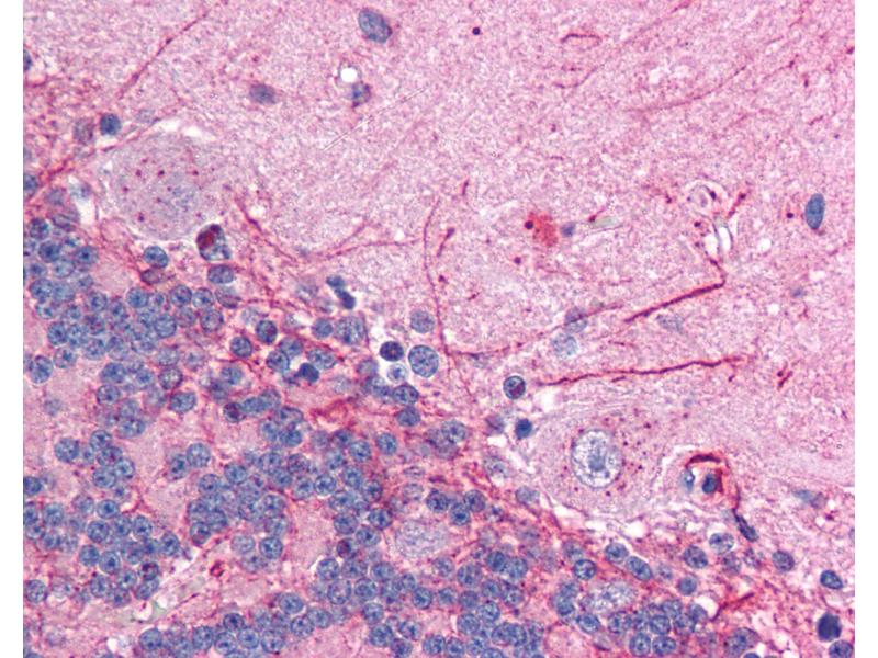Usage: Immunohistochemistry: This antibody was validated for use in immunohistochemistry on a panel of 21 formalin-fixed, paraffin-embedded (FFPE) human tissues after heat induced antigen retrieval in pH 6.0 citrate buffer. After incubation with the primary antibody, slides were incubated with biotinylated secondary antibody, followed by alkaline phosphatase-streptavidin and chromogen. The stained slides were evaluated by a pathologist to confirm staining specificity. The optimal working concentration for this antibody was determined to be 2.5 μg/mL. -